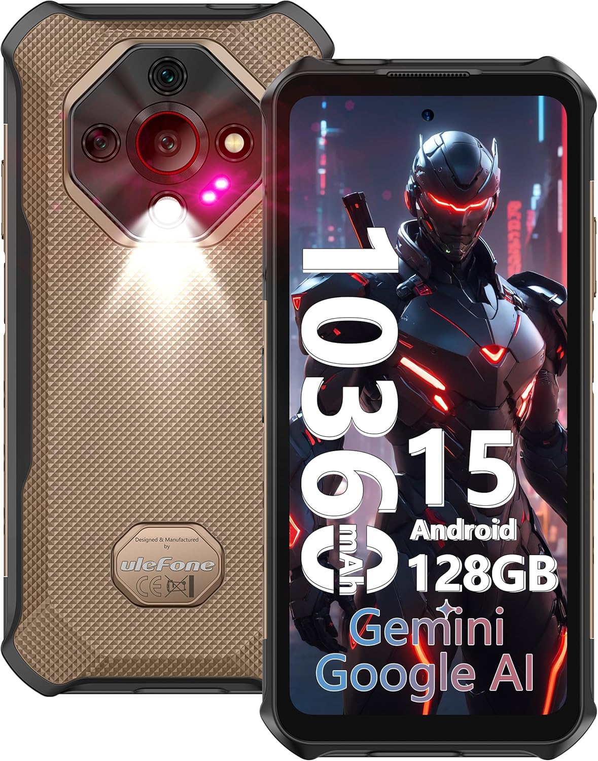Ulefone Armor X16 Rugged Smartphone, 10360mAh(33W) 12+128GB/2TB AI Unlocked Cell Phone, 48MP+20MP Night Vision, Android 15, 6.56” 90HZ, Widevine L1/Dual SIM/NFC/GPS/OTG (Sand Dune)