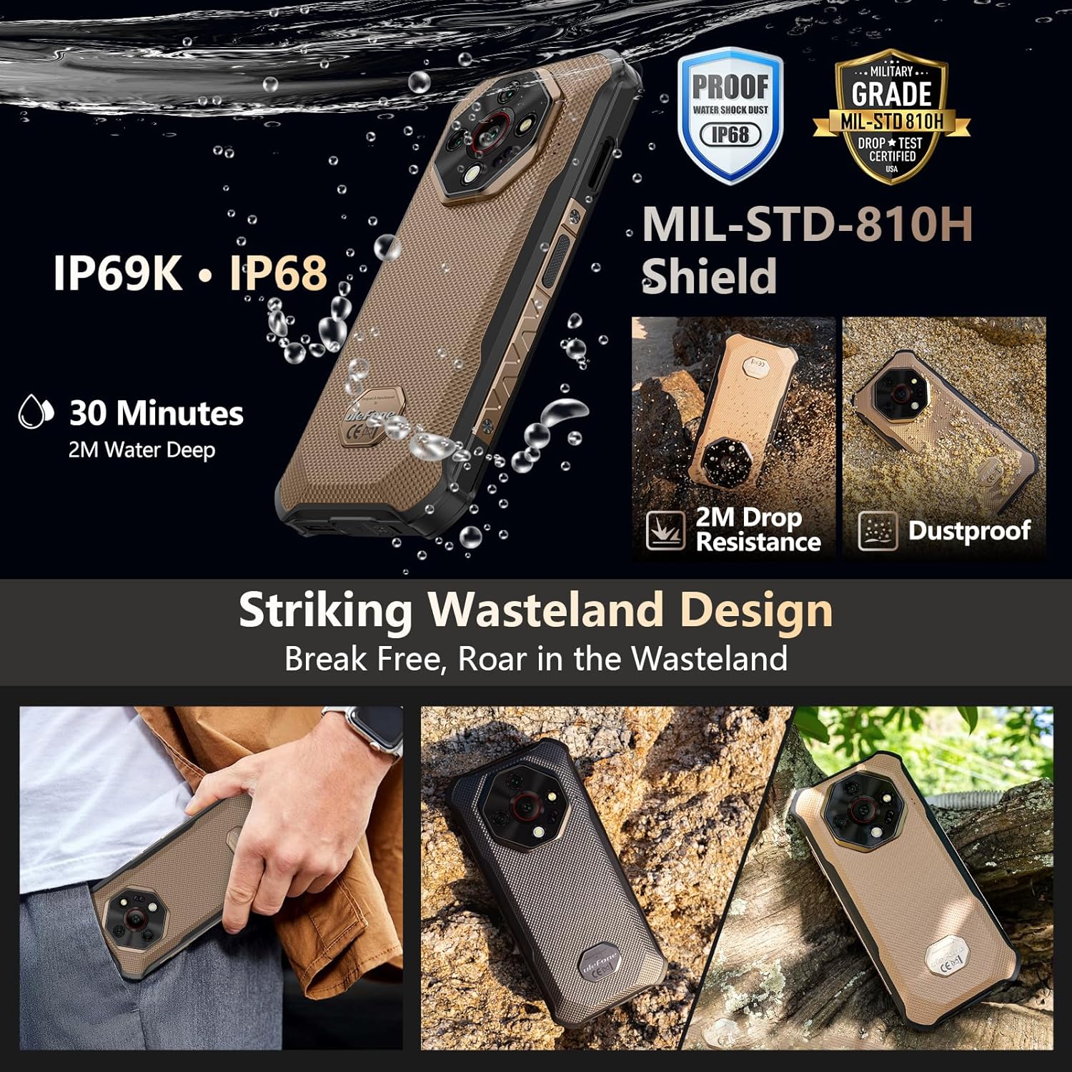 • Armor X16 boasts the ultimate rugged protection of IP69K, IP68, and MIL-STD-810H. From powerful water jets to deep submersion, from dust storms to bone-jarring drops, it is engineered to survive the harshest environments you can throw at it.